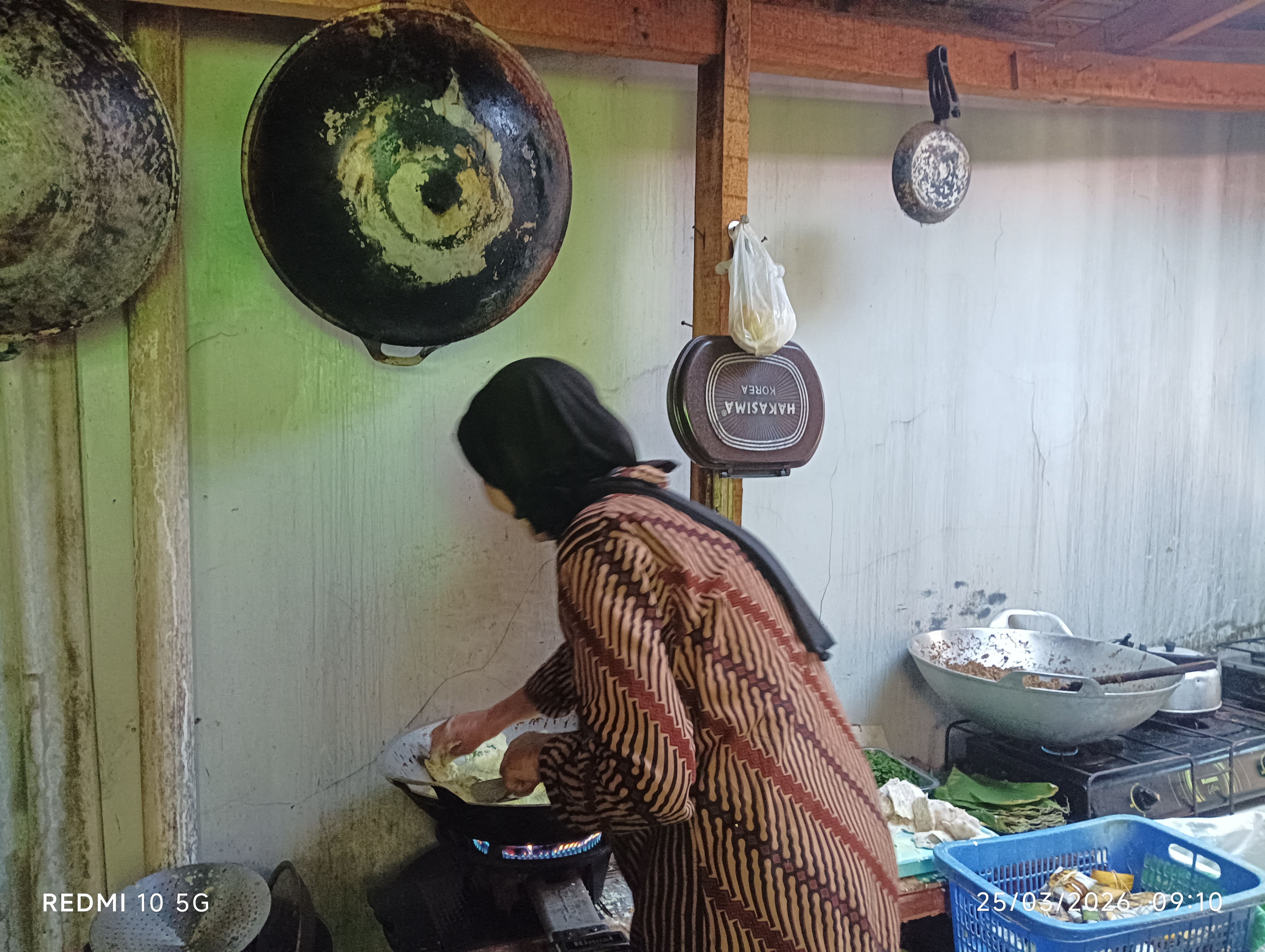 Soal harga, ini yang membuat banyak orang bertahan jadi pelanggan. Mulai Rp3.000 sudah bisa makan nasi megono. Paket Rp5.000 jadi primadona, nasi megono plus satu tempe kemul. Gorengan khas ini renyah di luar, empuk di dalam—dan hanya Rp1.250 per biji. Murah, tapi tidak murahan. Sebagian area dapur dan depan dapur difungsikan sebagai ruang makan. Sederhana, tapi cukup lega. Yang menarik, dapurnya terbuka. Pengunjung bisa langsung melihat sebagian proses memasak terutama ketika menggoreng tempe kemul.