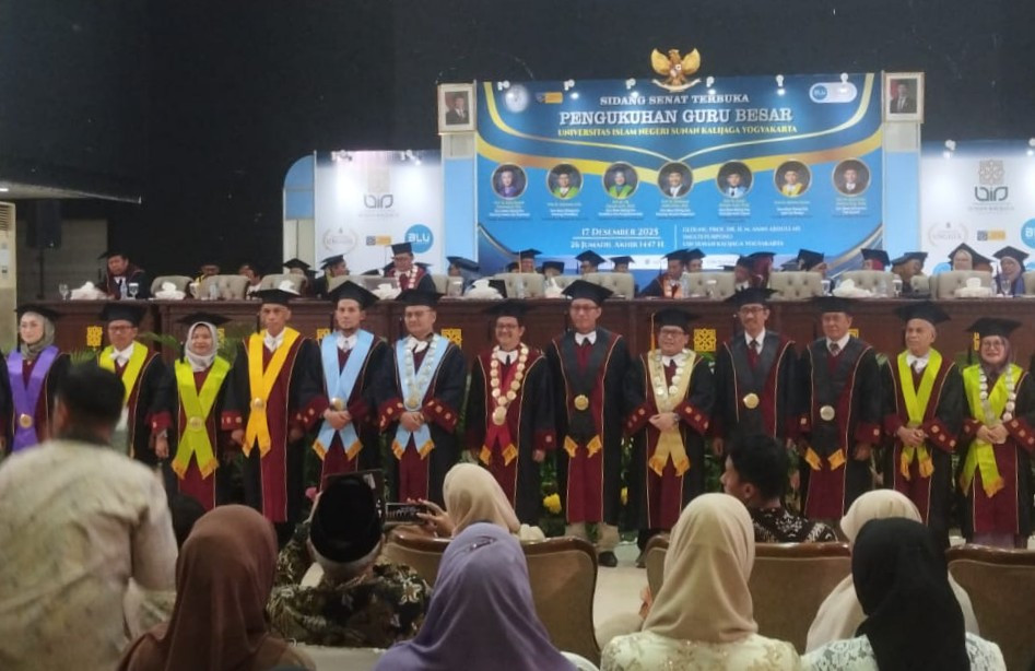 YOGYAKARTA, jogja-ngangkring.com — Universitas Islam Negeri (UIN) Sunan Kalijaga Yogyakarta menggelar Sidang Senat Terbuka Pengukuhan Guru Besar pada Rabu, 17 Desember 2025, di Gedung Prof. Dr. H. M. Amin Abdullah. Dalam sidang tersebut, tujuh dosen resmi dikukuhkan sebagai guru besar.