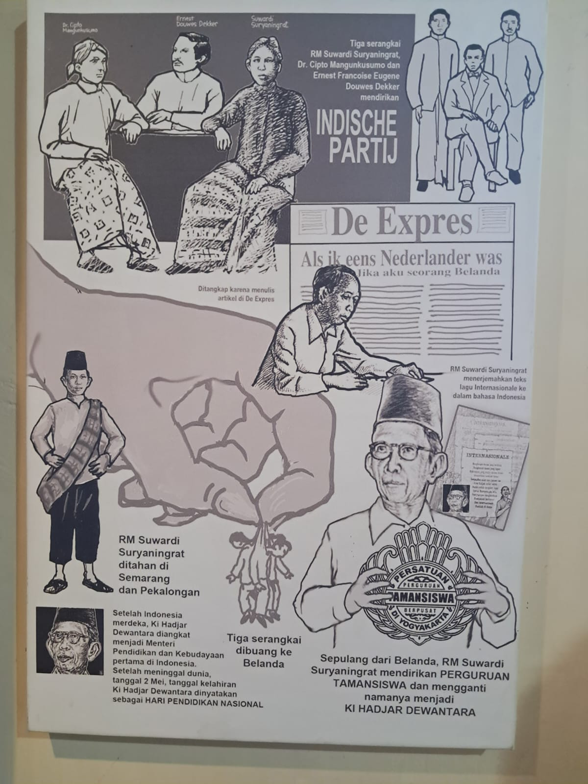 Koleksi yang tersimpan di dalamnya memperlihatkan lanskap perjuangan yang kompleks. Arsip seperti surat penangkapan R.M. Soewardi Soerjaningrat di Semarang, dokumen kebijakan kolonial seperti Ordonansi Sekolah Liar 1932, hingga catatan penangkapan kelompok Douwes Dekker, Cipto Mangunkusumo, dan Ki Hadjar, menjadi bukti konkret bagaimana gagasan kebangsaan lahir dalam tekanan kolonial. Artikel legendaris “Als Ik Eens Nederlander Was” yang mengantarkan pengasingan ke Belanda juga tersimpan sebagai pengingat bahwa kritik intelektual pernah dianggap ancaman serius oleh kekuasaan.